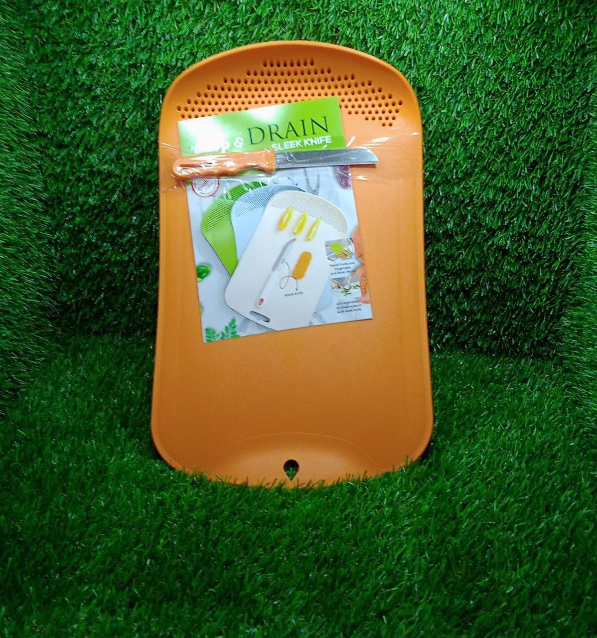- Easy Grip & Non-slip feet and an integrated colander at one end for rinsing and draining chopped food