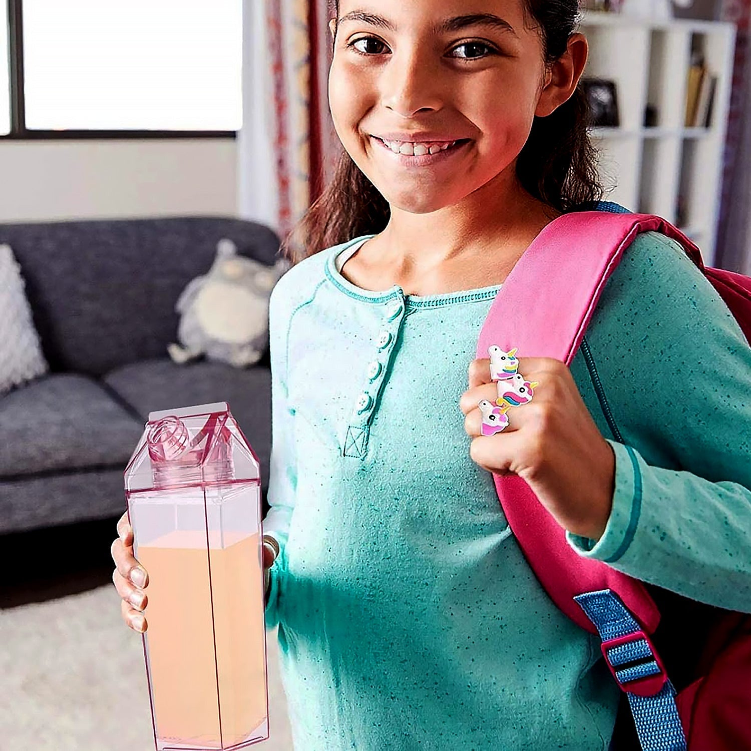 Plastic Milk Carton Colorful Clear Water Bottle, 17 Oz Portable Milk Box Leakproof Square Juice Bottle for Outdoor Sports Travel Camping