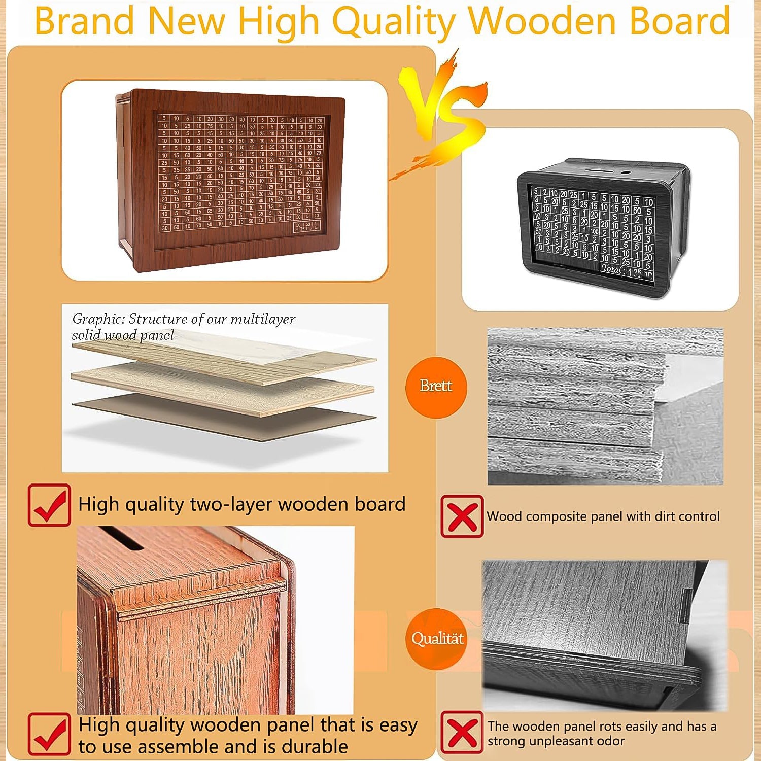 - 3.[EASY TO USE]: The detachable wooden piggy bank can be assembled in just a few steps. In addition, when you have saved the target amount, you only need to remove the wooden board at the back to easily take out all the money.